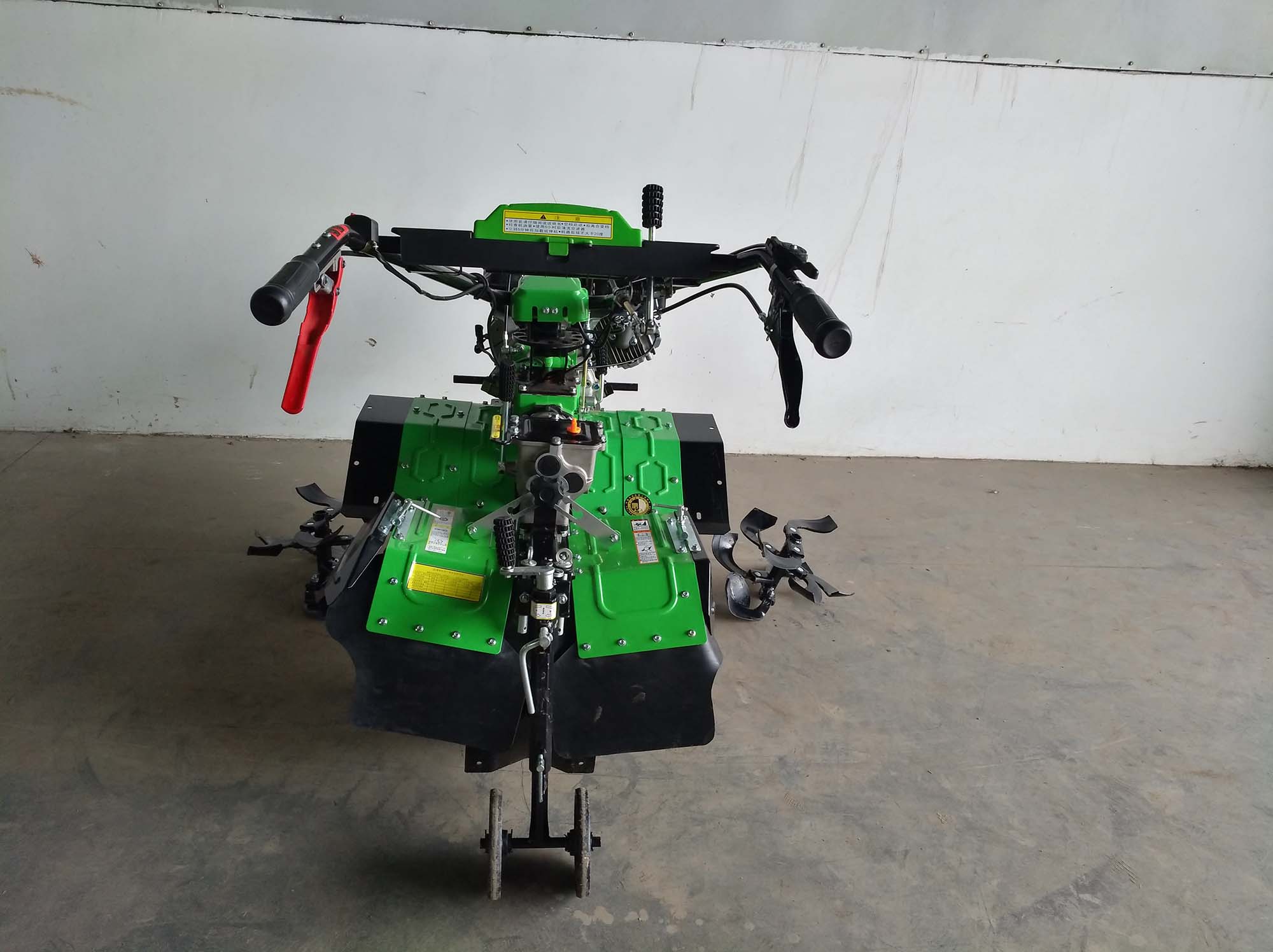详细配置参数: | 主机结构型式:双轴轮式;工作状态外形尺寸(长×宽×高)mm:1640×800×1000;主变速箱结构型型式:有级式;主变速箱箱体材质:上箱体为铝合金/下箱体为铸铁;副变速箱结构型式:有级式 ;副变速箱箱体材质:上箱体为铝合金/下箱体为铸铁; 扶把水平调整范围(º):180;扶把上下调整范围(º):60;发动机输出传动方式:直联;主离合器型式:摩擦片式;主离合器状态:常开;行走轮型式:铁轮;作业时驱动轮型式;铁轮; 行驶速度km/h:≤10;配套发动机结构型式:单缸、四冲程、OHV、汽缸中心线斜置25º、水平轴;标定功率kW:5.6;额定转速r/min:3600;起动方式:手起动;燃油种类:汽油;配套开沟器型式:刀片式;传动方式:齿轮传动;连接方式:直联;开沟工作幅度cm:25;开沟作业速度km/h:≥0.5;开沟深度cm:≥10;配套培土器型式:刀片式;传动方式:齿轮传动;连接方式:直联;培土工作幅宽cm:43;培土作业速度km/h:≥0.5;培土高度cm:≥5 | ||