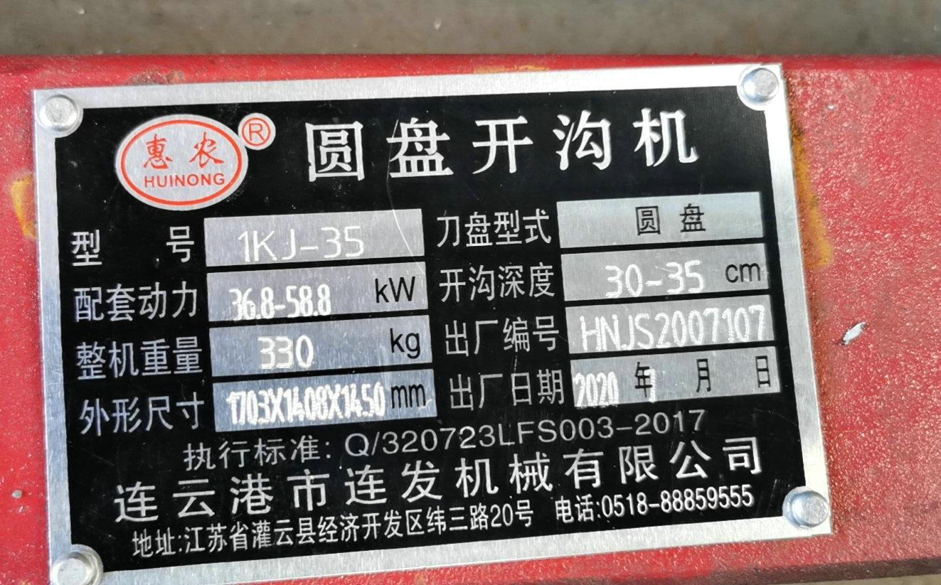 | 详细配置参数: | 结构型式:单圆盘;最终传动方式:齿轮;与拖拉机挂接方式:悬挂式;与拖拉机挂接位置:后置式;配套拖拉机标定功率(kW):36.8~58.8;配套拖拉机动力输出轴转速(r/min):540、720;外形尺寸(长×宽×高):1703×1408×1450mm;作业速度范围(m/s):0.56~1.11;生产率(m/h):2100-3500;开沟沟形:倒梯形;开沟条数:1条;开沟深度(cm):30~35;沟面宽度(cm)22~32;沟底宽度(cm):12~14;开沟刀弯刀数量(把):12;开沟刀直刀数量(把):6;刀盘数量(个):1;开沟刀盘最大回转直径(mm):1100;刀盘最大回转宽度(mm):220。 | ||