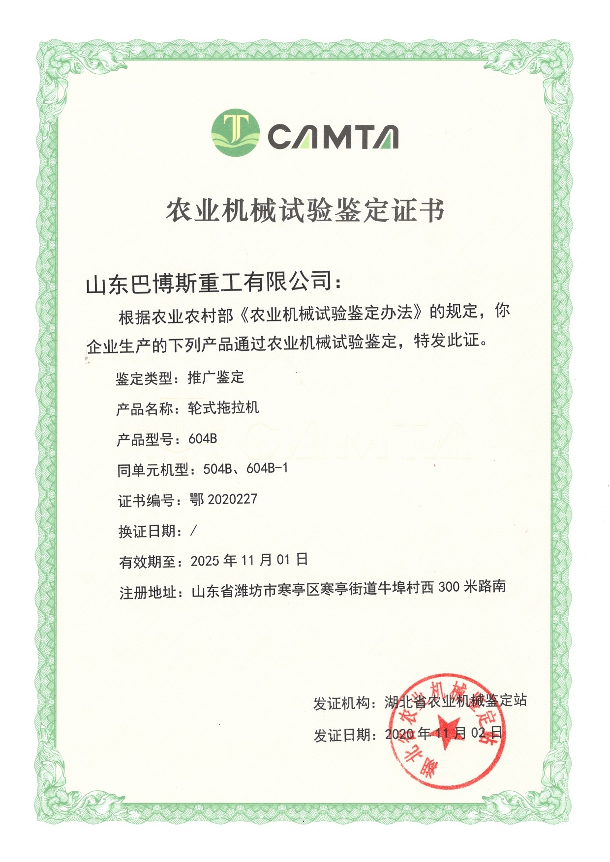 | 发证机构: | 湖北省农业机械鉴定站 |