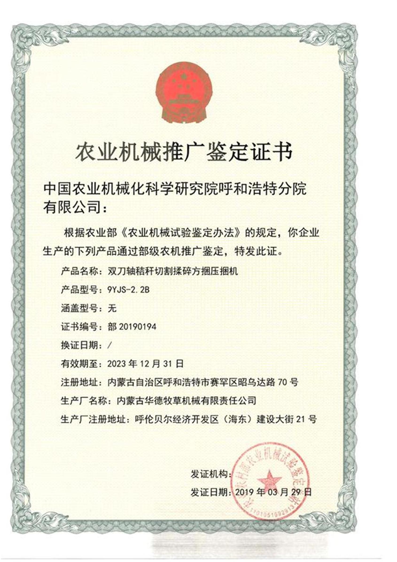 推广鉴定证书: