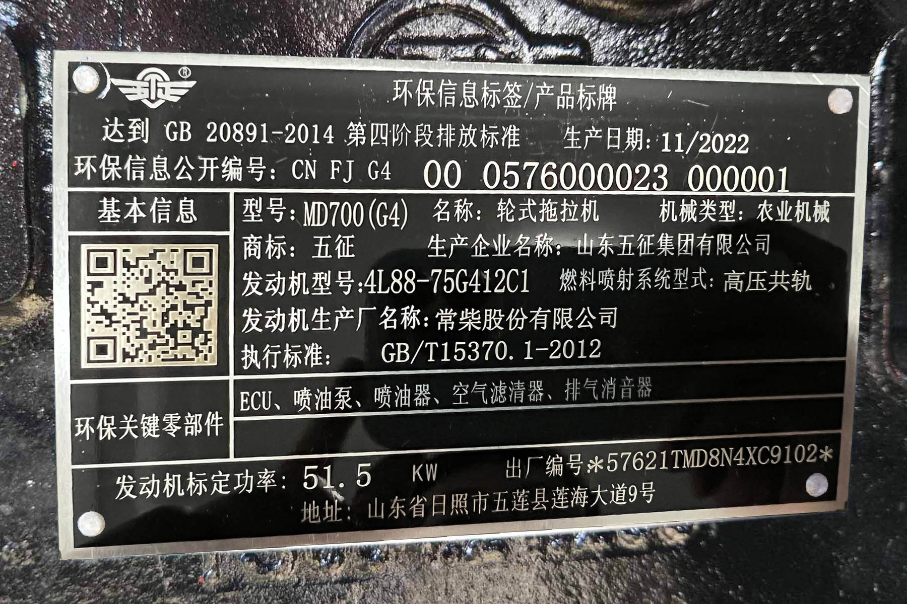 发动机型号:4L88-75G412C1,标定功率:51.5kW,制造商:常柴股份有限公司,排放阶段:国四 |