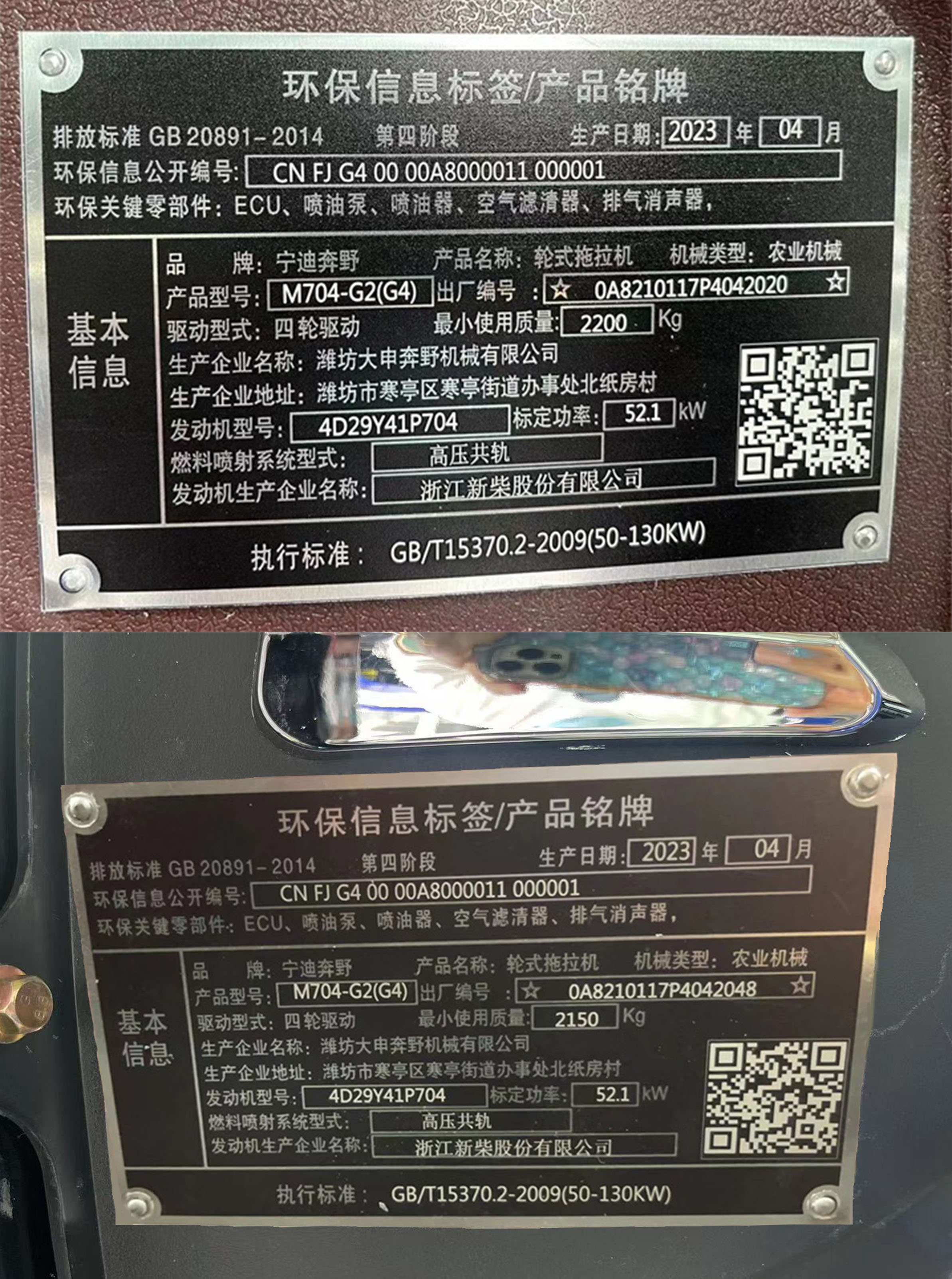 配套发动机型号;4D29Y41P704 生产厂;浙江新柴股份有限公司