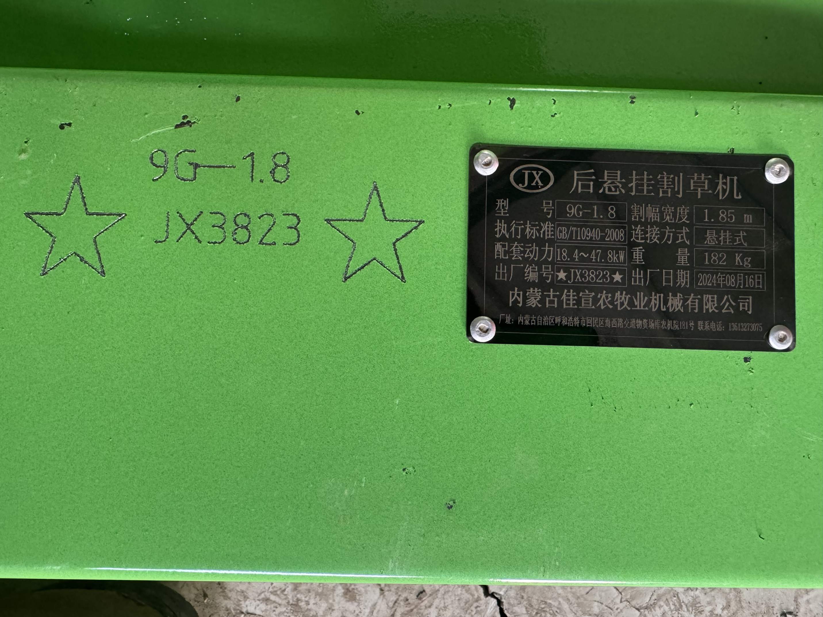 机具分档: 1.8m及以上往复式割草机 | |||