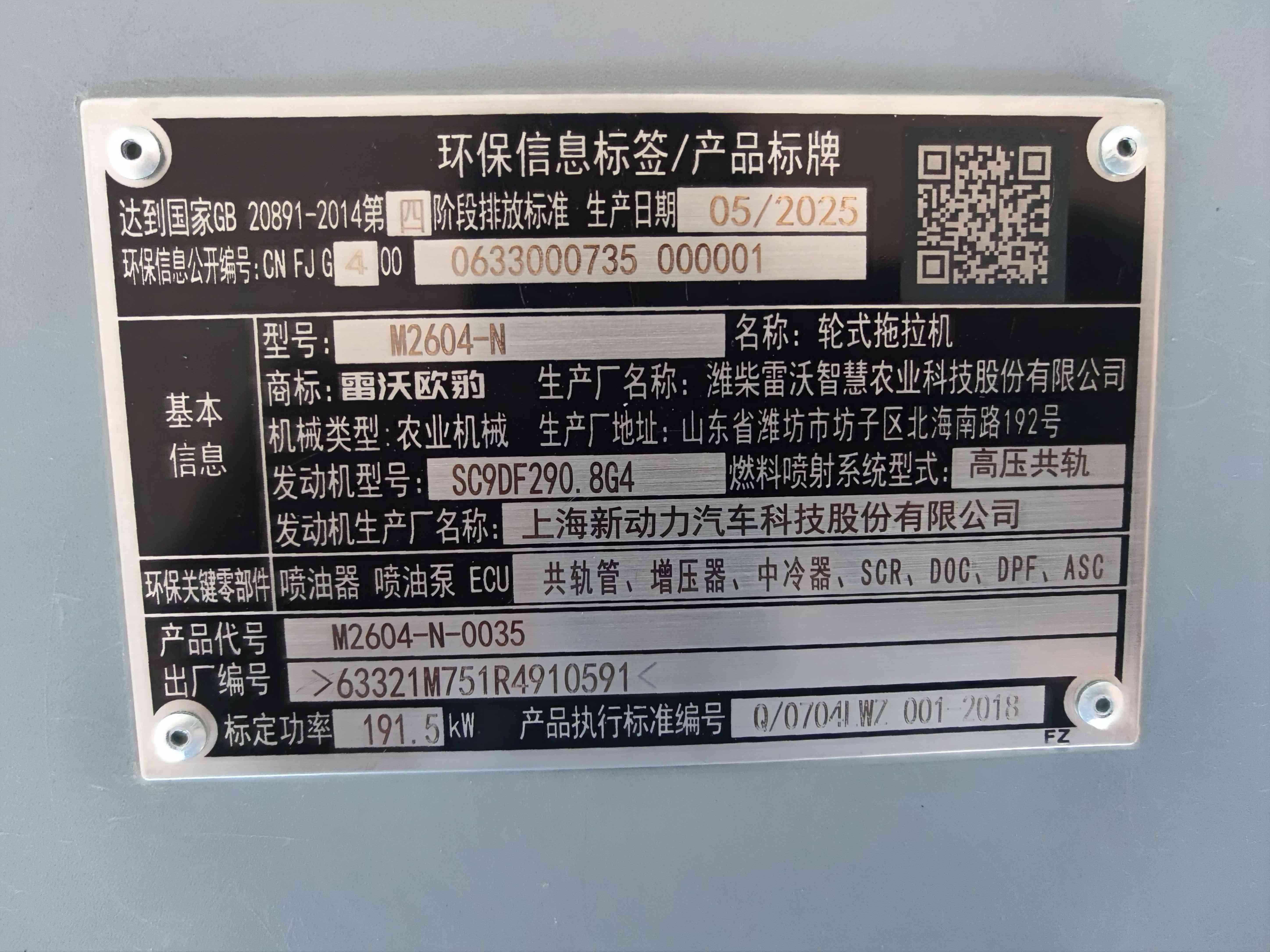 配套动力型号:SC9DF290.8G4;制造商:上海新动力汽车科技股份有限公司;气缸数:6;标定功率(kW):191.5;标定转速(r/min):2200;排放标准:第四阶段。 |