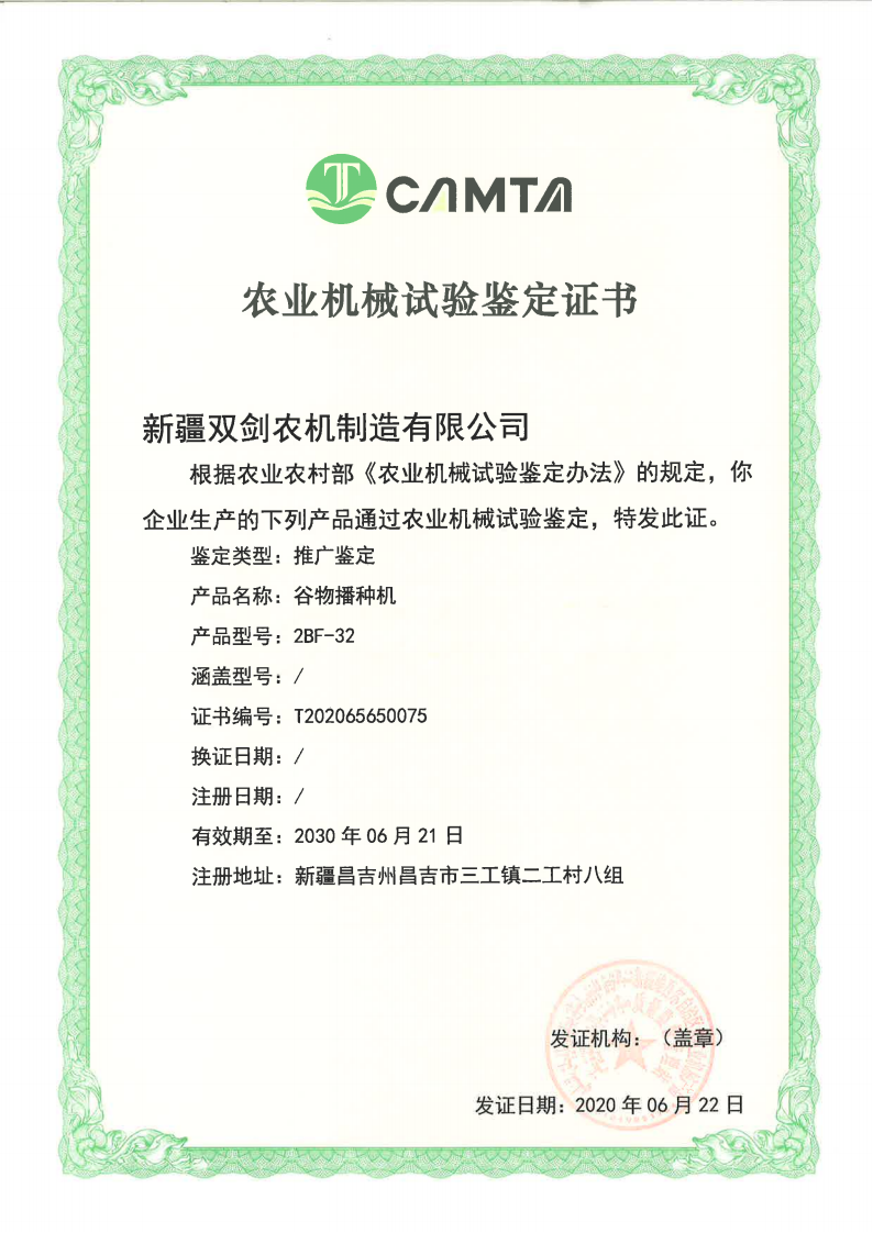 | 发证机构: | 新疆维吾尔自治区农牧业机械产品质量监督管理站 | ||